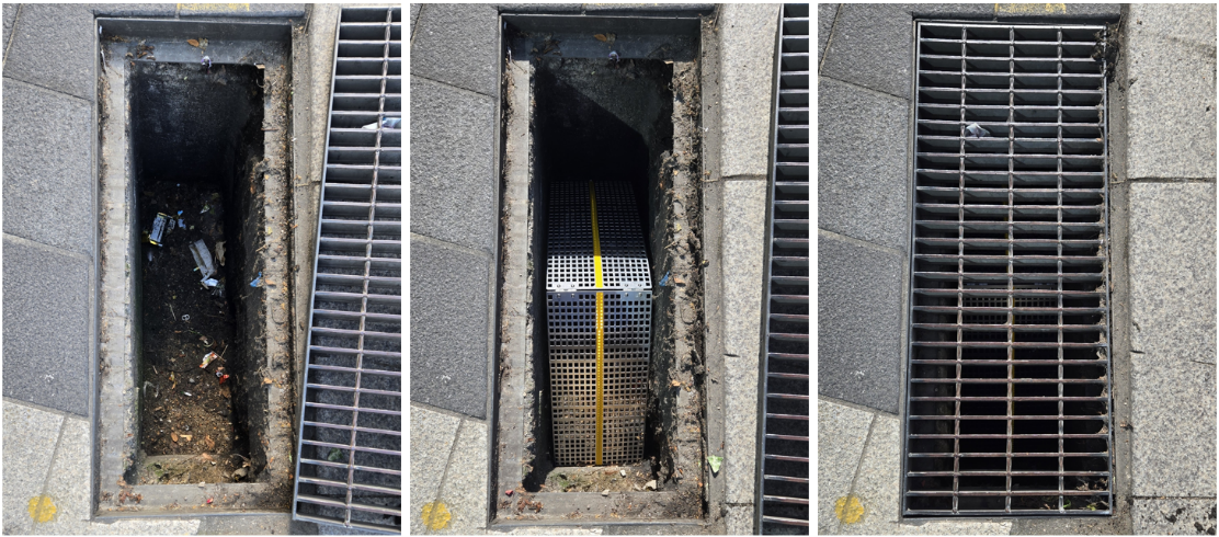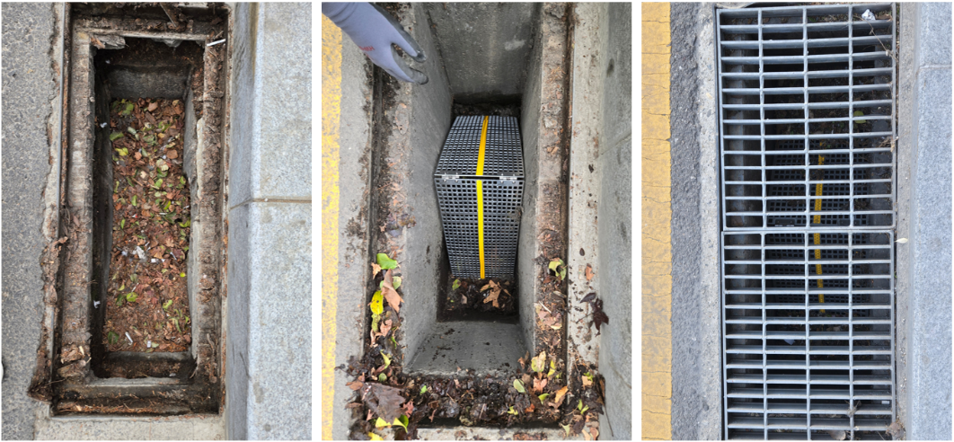 이물질 적치 공간을 양 측면으로 제한하는 특수 구조로 중앙부는 항상 배수가 원활합니다.