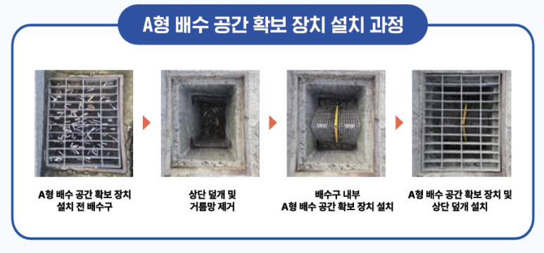 A형 배수공간 확보장치를 신속하게 거치합니다.